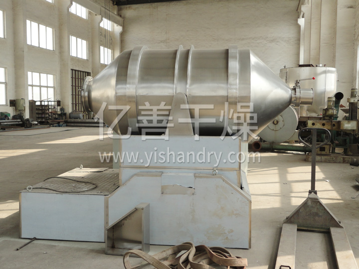 EYH二維混料機(jī)的轉(zhuǎn)筒可同時進(jìn)行二個運(yùn)動,一個為轉(zhuǎn)筒的轉(zhuǎn)動,另一個為轉(zhuǎn)筒隨擺動架的擺動。被混合物料在轉(zhuǎn)筒內(nèi)隨轉(zhuǎn)筒轉(zhuǎn)動、翻轉(zhuǎn)、混合的同時,又隨轉(zhuǎn)筒的擺動而發(fā)生左右來回的摻混運(yùn)動,在這兩個運(yùn)動的共同作用下,物料在短時間內(nèi)得到充分的混合。EYH二維混料機(jī)適合所有粉、粒狀物料的混合。